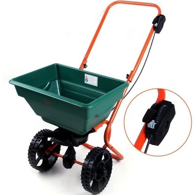 Kvalitní plastový sypací vozíček s objemem 12l. Ideální zařízení pro roznos hnojiva, semen anebo zimního posypu. Objem: 12 l Šíře posypu: 45 cm