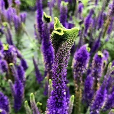 - kvete v hustě zarostlých hroznech od června do srpna. Květy mají výraznou fialovou barvu. Odrůda vhodná k řezu. Výška 60 - 90 cm. Květy přitahují motýly a další opylovače.