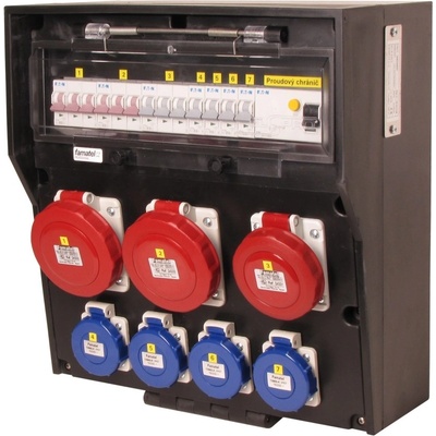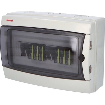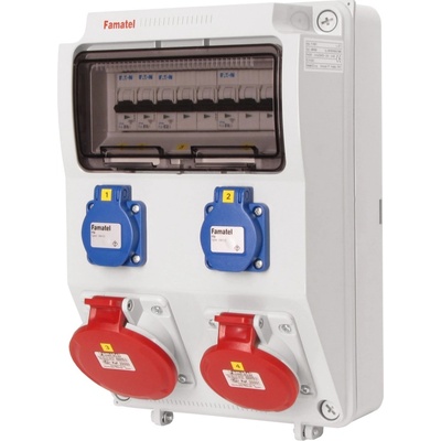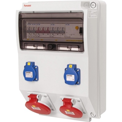 Zásuvková skříň FAMATEL rb632697-RB40102000.1 /4030 IP65 jištěná s chráničem 63/4/003, zásuvky 4x230V, 1x16/5, 2x32/5, přístroje EATON 10kA: 4xPL7-B16/1, 1xPL7-B16/3,...