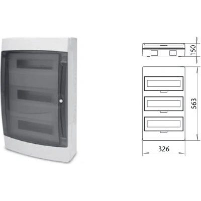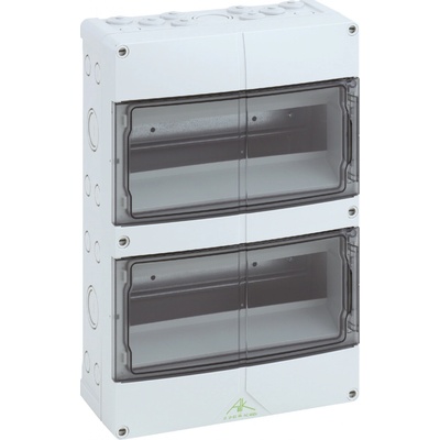 průhledná dvířka, montáž nástěnná, krytí IP 65, materiál plast, třída ochrany I, mechanická odolnost IK 08, 18 modulů v řadě, řady 1, moduly 18, šířka 430 mm, výška 290 mm,...