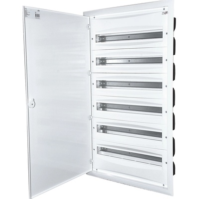 Rozvodnice EATON 283051 BF-U-6/144-C Xboard pod omítku je bílá ocelová rozvodnice, DIN lišta s počtem řad 6 pro celkem 144 modulů. Elektrický rozvaděč pod omítku, do zdi, krytí...