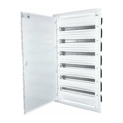 Doplňující informace pro zapuštěnou montáž neprůhledné plechové dveře, počet řad 4, počet modulů v řadě 14, krytí IP30, PE+N, barva bílá, materiál : ocel-plast Parametry...