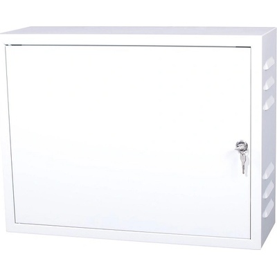 Celokovová uzamykatelná rozvodná skříň pro vnitřní použití v bílé barvě s rozměry 300x300x140mm disponuje několika vylamovacími otvory na horní a spodní straně. Uchycení na zeď...
