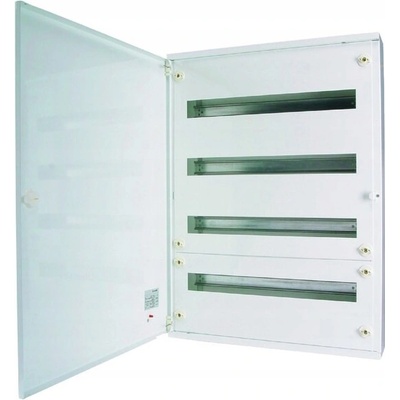 Rozvodnice, NA omítku, bílá, prosklené dveře, N/PE svorkovnice Parametry produktu Způsob montáže: Montáž na stěnu Počet modulů: 96 Počet řad: 4 Šířka v počtech modulů: 24 Druh...