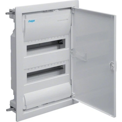 Rozvodnice zapuštěná volta, 2-řadá, 24 + 4 modulů, systém quick connect bezšroubové svorky, plastová vana, kovová plná dvířka, zkouška žhavou smyčkou 650 °C Značka HAGER Malé...