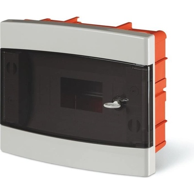 Plastová rozvodnice NUOVA 3508 v krytí IP40, 8/10mod., rozměry: 215x260x100mm, svorkovnice PE/N součástí, montáž pod omítku, průhledná (transparentní) dvířka, barva:...