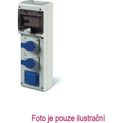 Zásuvková rozvodnice jištěná jističi řady D561 - zás.: 3x 230V/16A, 2x 400V/16A, 1x 400V/32A, jištění: 1xB16/1, 1xC16/3, 1xC25/3