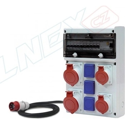 Zásuvková rozvodnice jištěná jističi řady D561 - zás.: 2x 230V/16A, 2x 400V/16A, 2x 400V/32A, jištění: 2xB16/1, 2xC16/3, 2xC25/3