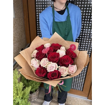Udělejte ji radost kyticí růžových a červených růží. Touto jedinečnou kombinací uděláte dojem na každou ženu. Tyto královny květin svazujeme saténovou stužkou, aby vynikla...