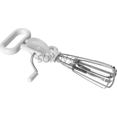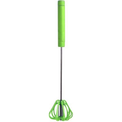 Praktický šlehač na vejce - metlička. Mačkáním rukojeti nahoru a dolů roztáčíte metličku. Je ideální na mixování vajíček, jíšky, zahušťování směsí, řídké těsta, šlehačku a jiné...
