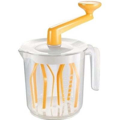 Podrobnosti o produktu OR130602 Ruční kuchyňský šlehač z plastu o objemu 1,5 l, s měrnou stupnicí až do 1000 ml a šlehacími metlami z eloxovaného hliníku. Tento model ručního...