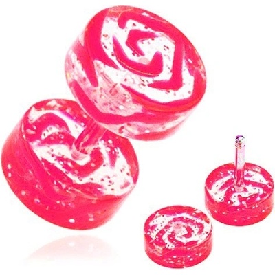 Piercing do ucha z akrylu, fake plug s rozkvetlou růží, průhledné kolečko.