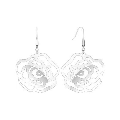 Náušnice z chirurgické oceli - háček, lesklá stříbrná plochá růže.