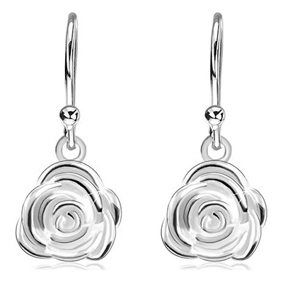Visací náušnice, stříbro 925, blýskavý květ růže s lesklými zaoblenými lupínky, africké háčky.