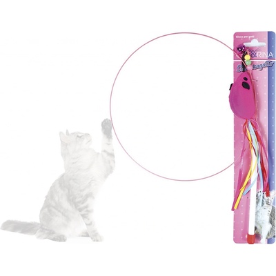 Kočičí vtipná hračka s plyšovou myší. Celková délka hry 46 cm