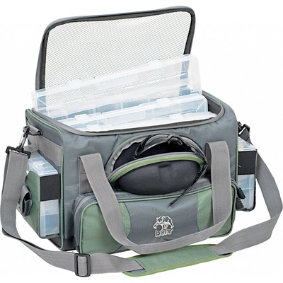 Kvalitní rybářská taška se čtyřmi velkými plastovými boxy, ideální pro příznivce přívlače. Taška nabízí dostatek prostoru pro nástrahy, drobnosti a další rybářské vybavení....