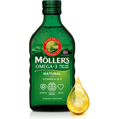 > Mollers Omega 3 je rybí olej z norské přírody. Doplněk stravy. Složení: rybí olej z jater tresky, DL-alfa-tokoferyl-acetát (vitamin E), antioxidant (extrakt s vysokým...