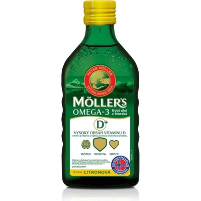 Möller`s rybí olej Omega 3 z tresčích jater pro dospělé 50+ s citrónovou příchutí obsahuje vysoké množství vitamínu D.Tento rybí olej získávaný z chladných vod ostrovů Lofoty...