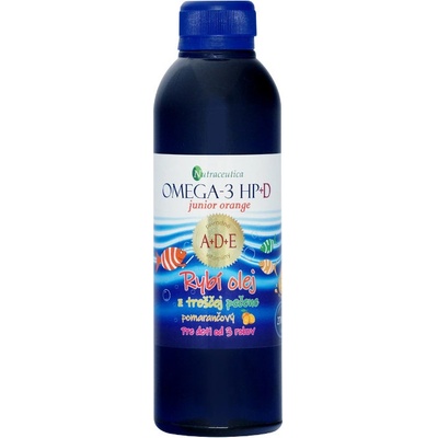 Hlavní výhody oleje z tresčích jater Omega-3 HP + D junior orange: Bohatý přírodní zdroj vitamínů A, D a E. 22% Omega-3 EPA a DHA ve snadno vstřebatelné triglyceridů formě = ve...