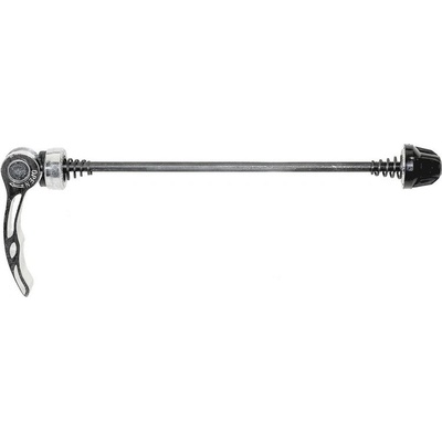 Přední rychloupínací táhlo pro upnutí kol Materiál osy: Al Délka: 100mm Průměr: 5 mm Hmotnost: 39 g Barva: černo-stříbrná Balení: servisní v sáčku