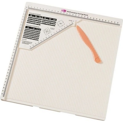 Rýhovací deska na ohýbání papírů s pravítkem v centimetrech v horní a postranní části. Deska obsahuje přídavný roh s rozměry, které lze využít při tvorbě obálek nebo obálkových 3D boxů, přání apod. Na horním měřítku jsou značky pro rýhování papírů A4, A5,...