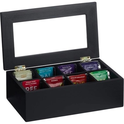 Relaxdays krabička na čaj, 8 přihrádek, bambus, VxŠxH: 9x28x16 cm, sáčky na čaj a kávu, krabička na