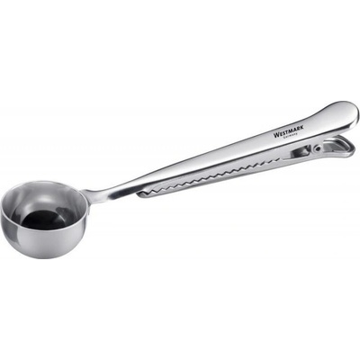 Odměrka na kávu a čaj s dlouhou rukojetí a sponou umožňující uzavření balení.
