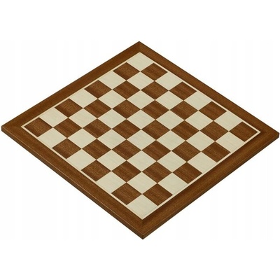Dřevěná šachovnice 40 × 40 cm z mahagonu a javoru s úložným boxem na figurky. Políčka 45 mm, alfanumerické značení pro snadnou orientaci.