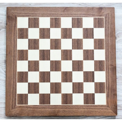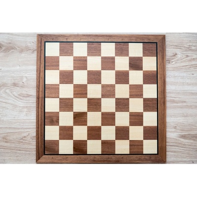 Samostatná dřevěná šachovnice, opatřená číslicemi a písmeny na okrajích. - Velikost hracího pole 55 mm - Výška desky 13 mm - Bez figur