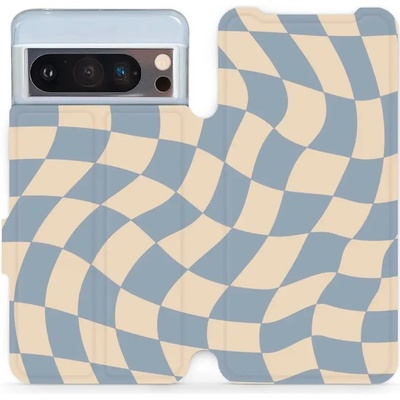 Knížkové pouzdro, obal, kryt Mobiwear na mobil Google Pixel 8 Pro - VA59S Modrá a béžová šachovnice - ochrana celého telefonu, funkce stojánku, odolná TPU vanička, magnetické...