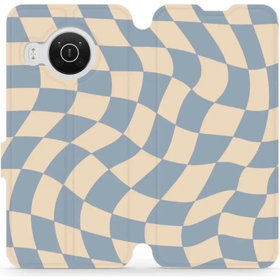 Knížkové pouzdro, obal, kryt Mobiwear na mobil Nokia X10 - VA59S Modrá a béžová šachovnice - ochrana celého telefonu, funkce stojánku, odolná TPU vanička, magnetické zavírání,...