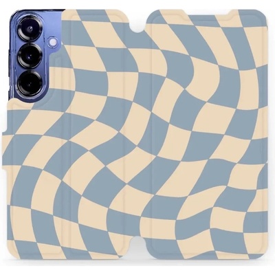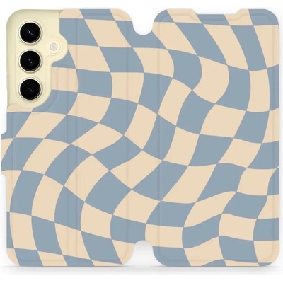 Knížkové pouzdro, obal, kryt Mobiwear na mobil Samsung Galaxy A55 5G - VA59S Modrá a béžová šachovnice - ochrana celého telefonu, funkce stojánku, odolná TPU vanička, magnetické...