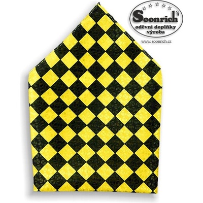 kapesník žlutá šachovnice, materiál: 100% polyester tkaný, rozměr: 20 x 20 cm, vzor: šachovnice, kostka 1 x 1 cm, barva: černá, žlutá , Pánský, chlapecký kapesníček do klopy...