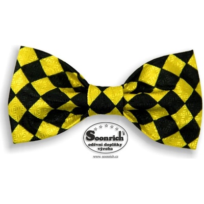 motýlek žlutá šachovnice, materiál: 100% polyester tkaný, rozměr: 10 x 5 cm, obvod gumy: 50 cm, vzor: šachovnice, šachy, kostka 1 x 1 cm, barva: černá, žlutá , Dámský, pánský...