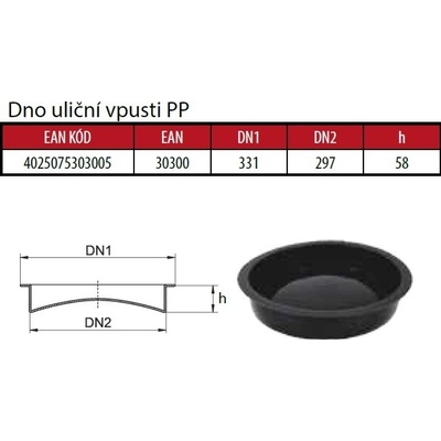 materiál polypropylen, na vtoku i výtoku je hladké hrdlo (KG), dodává se včetně těsnicí manžety prodloužení šachty, průměr vtoků DN 150, úhly vtoků/výtoků 0 °-180...