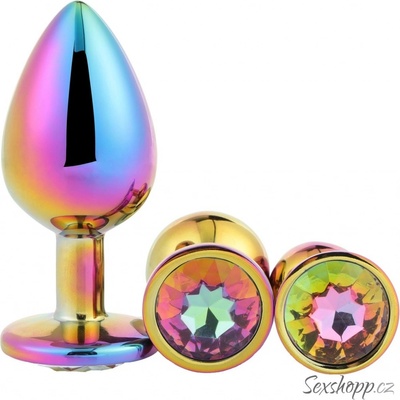 Set análních kovových kolíků ozdobených čirým kamenem. Díky třem velikostem můžete postupně experimentovat s kolíky a zjistit velikost, která vám nejvíce vyhovuje. Balení obsahuje 3 úložné sametové sáčky na vaše nové hračky.