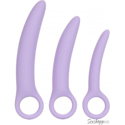 Souprava tří silikonových dilatátorů modré barvy, mírně prohnutého tvaru. Různé průměry. Barva: modrá Materiál: 100 % silikon (bez použití nebezpečných ftalátů, dle nařízení EU) Rozměry: celková délka 16,5 cm, průměr 6 mm, 8 mm, 10 mm