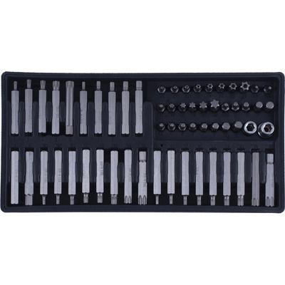 Modul – zástrčné hlavice XZN, TRX, IMBUS pro dílenský vozík, 60 dílů, STAVTOOL Modul STAVTOOL obsahuje 60dílnou sadu zástrčných hlavic a bitů typu XZN (Spline), TRX a IMBUS....