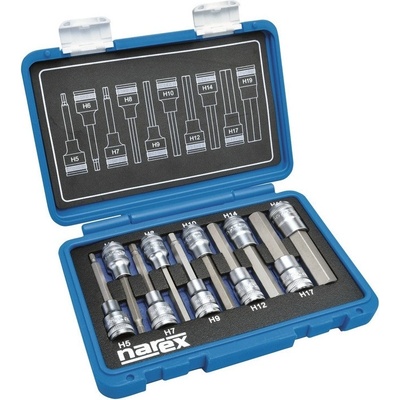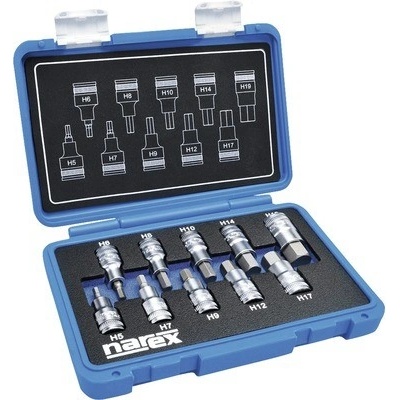 NAREX Sada hlavic 1/2" zástrčných imbus 5-19mm L100mm 10dílná Základní informace:rozměr: 250 × 175 mmhmotnost: 1,738 kgkovaná, chrom-vanadová ocelpovrchová úprava matný chrom -...