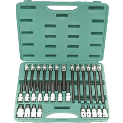 30-dílná sada nástrčných hlavic 3/8" s kovanými hroty vnitřního profilu šestihran / imbus 5 až 14 mm. - 4 různé délky 48 / 93 / 133 / 193 mm - sada je uložená v plastovém...