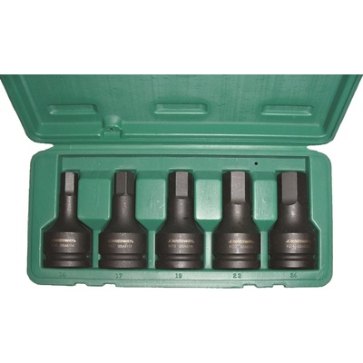 Sada zástrčných hlavic imbus 3/4" - JONNESWAY S05A6105S Rozměry: H14, H17, H19, H22, H24 Dlouhé 88 mm Kované - vhodné pro rázové utahováky Chrom molybden V plastové kazetě.