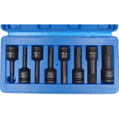 Sada úderových imbusových hlavic, 8 hlavic (H5-H19), 1/2”, Cr-Mo ocel, v plastové kazetě – QUATROS QS50008 Praktická souprava osmi imbusových hlavic. Velikosti v sadě jsou H5,...