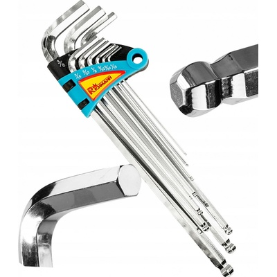 Sada IMBUS klíčů prodloužené s kuličkou v palcových rozměrech 9 dílů TECHNICKÉ PARAMETRY: Velikost: 1/16", 5/64", 3/32", 1/8", 5/32", 3/16", 7/32", 5/16", 3/8"