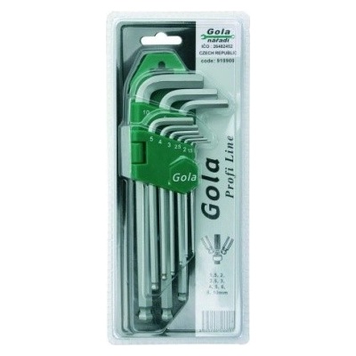 Souprava 9 ks imbusových klíčů 1,5; 2; 2,5; 3; 4; 5; 6; 8; 10 mm. Materiál specialní ocel s tvrzeným povrchem S2.