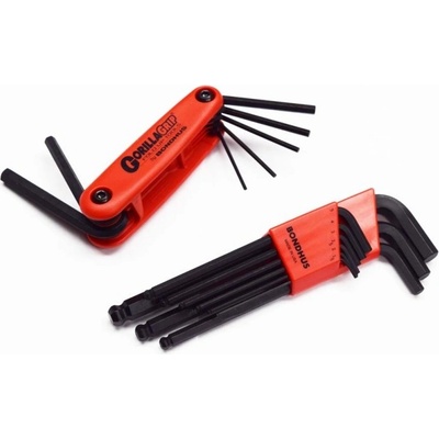 Sada 9ks metrických + kapesní sada 7ks IMBUS klíčů GorillaGrip Metrické klíče s kuličkou : 1,5mm 2mm 2,5mmn 3mm 4mm 5mm 6mm 8mm 10mm Kapesní sada obsahuje IMBUS klíče bez...