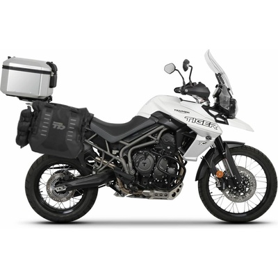Sada ADVENTURE TERRA SHAD obsahuje sadu sedlových brašen TR40 určených pro jízdu v terénu a montážní sadu 4P SYSTÉM pro upevnění, také vrchní hliníkový kufr TR55 PURE BLACK...