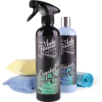 Sada autokosmetiky na čištění a leštění skel Auto Finesse Pokud máte skla více znečištěná usazeným vodním spotem a dalšími nečistotami, může na ně být pouhý čistič oken...