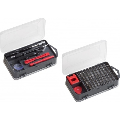 sada nářadí Praktická oboustranná krabička obsahuje veškeré nářadí pro opravu mobilních telefonů a jemné mechaniky. Využije každý domácí kutil i nadšenec do elektroniky. Hlavním lákadlem je velmi široký výběr z 90 malých precizních bitů včetně speciálních...