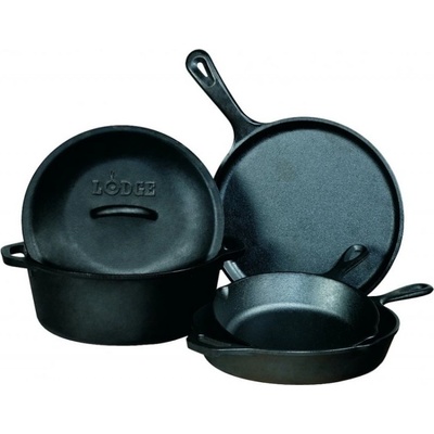 Multifunkční sada litinového nádobí Lodge Čistá litina bez jakéhokoliv chemického "nepřilnavého" povrchu a snese i extrémně vysoké teplotySada obsahuje:litinová pánev 20...