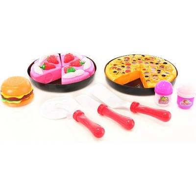 Plastová sada obsahuje koláč a dort na dílky, hamburger, slánku, pepřenku a náčinní. Rozměr koláče cca 16 cm. Rozměr balení cca 40 x 28,5 cm. Věk 3+